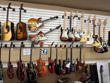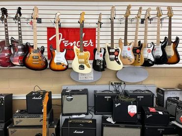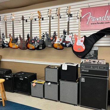 New/Used Guitars, Basses, Drums, Keyboards, Amps, PA gear, Instrument repair, Lessons, and more!